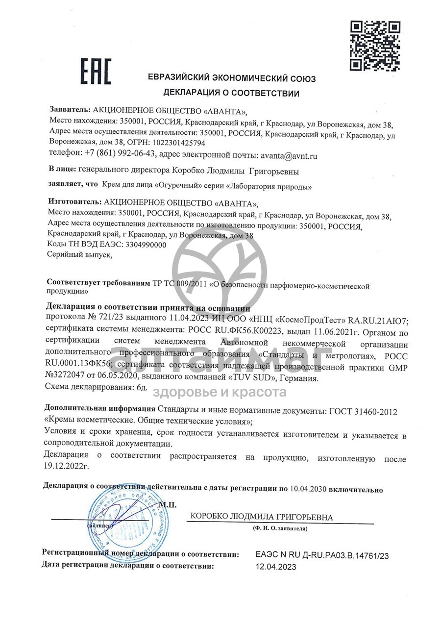 - Чтобы купить Крем для лица «Огуречный» совершите всего несколько шагов: укажите количество продукта и нажмите на кнопку «Купить».