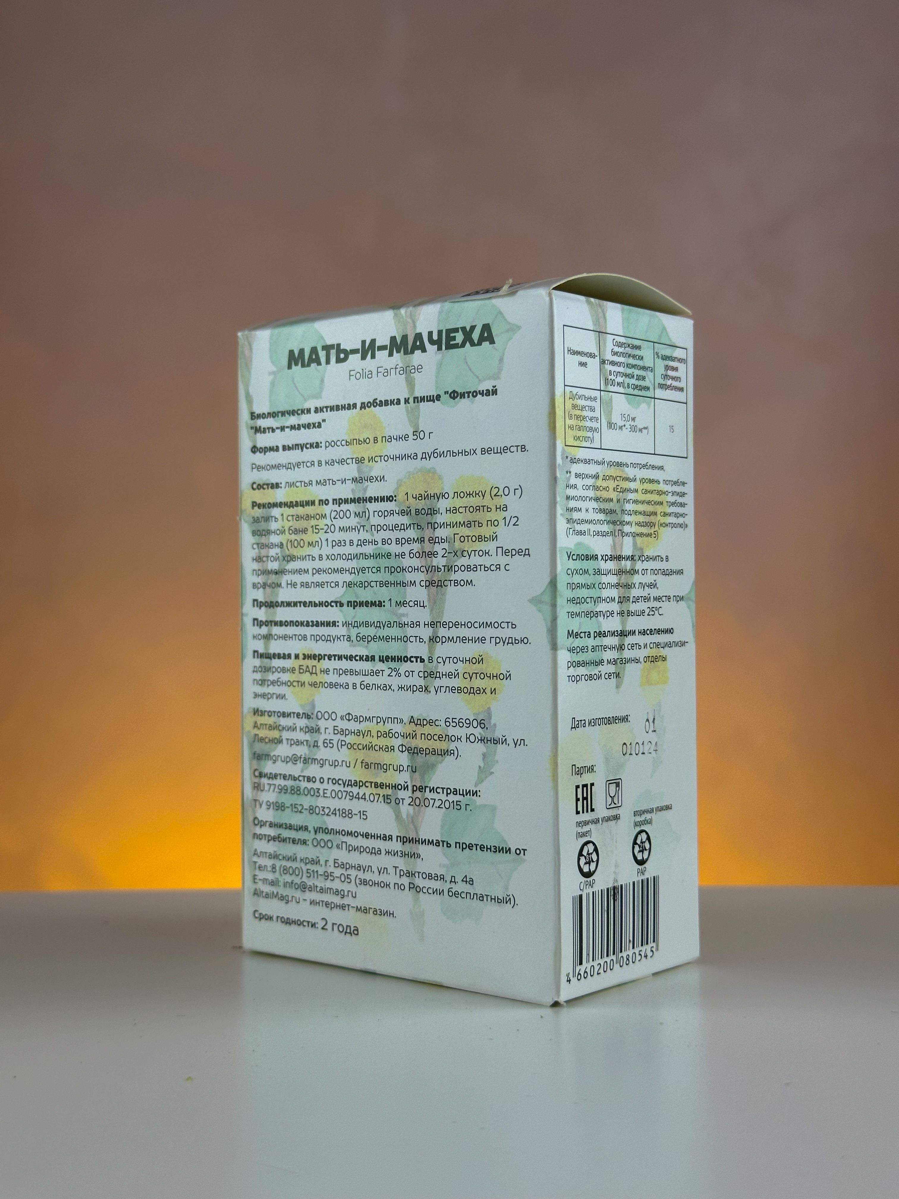 - Чтобы купить Мать-и-мачеха (листья) АлтайМаг 50г совершите всего несколько шагов: укажите количество продукта и нажмите на кнопку «Купить».